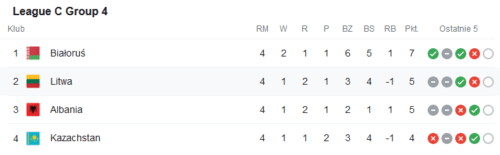 Kto by się spodziewał, że drużyna, która jeszcze niedawno znana była z tego, że od ponad 4 lat nie wygrała meczu o punkty, dziś stoi przed realną szansą na awans do Dywizji B? Po 4 spotkaniach (zwycięstwo, 2 remisy, porażka) Litwini są wiceliderami Dywizji C grupy 4 Ligi Narodów i przed nimi dwa ważne i ciężkie starcia. Zwłaszcza, że sytuacja w grupie jest bardzo wyrównana.