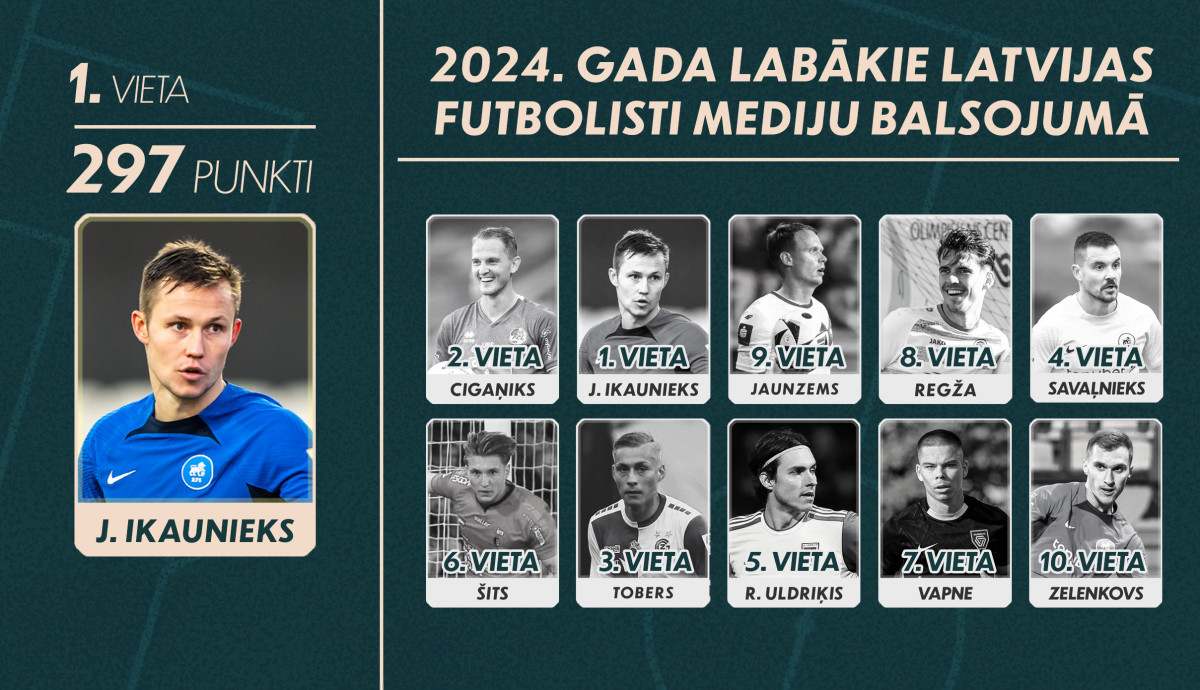 Z radarów całkowicie zniknął dwukrotny zwycięzca głosowań (2021, 2022) Vladislavs Gutkovskis. Niestety rok 2024 upłynął mu pod znakiem kontuzji i jedynie Niks Gaigalietis ze stacji Best4Sport TV umieścił go w swoim top6, na ostatniej lokacie. Dużo lepiej poszło Robertsowi Savaļnieksowi (epizod w Jagiellonii Białystok w 2014), który uplasował się tuż za podium, na czwartej lokacie. Innym i jednocześnie ostatnim już polskim śladem jest były piłkarz Lecha II Poznań, Antonijs Černomordijs, który z 7 punktami na koncie zajął 12. lokatę.