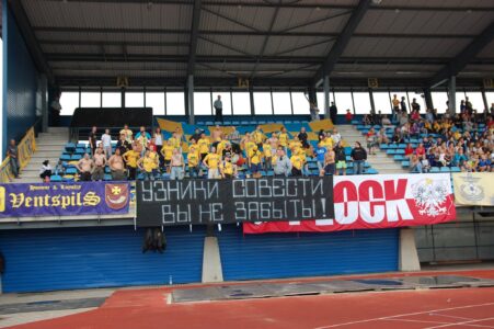 Do opisania całej tej historii próbowałem zebrać się jeszcze w 2019 roku gdy nie do końca skutecznie zasięgnąłem języka u przywódców grupy Ventspils Ultras, Alekseja Mołodoja. „Jesteśmy przyjaciółmi, ale już nieaktywnymi” – to jedyne co udało mi się wówczas zdobyć na temat ich relacji z kibicami Wisły Płock. I właściwie ten stan utrzymuje się do dziś. Pierwszym punktem przy powstaniu niniejszego tekstu była dość przypadkowa konwersacja z kibicem Wisły o nicku Patologang na Twitterze. W jego ocenie nie była to typowa zgoda, układ to też może być zbyt duże słowo. Kilka osób z Wisły po prostu nawiązało znajomości z kibicami Ventspils, zaczęły się wzajemne odwiedziny, które z czasem jednak ustały. Mimo wszystko przyjaźnie przetrwały i do dziś na linii Płock – Ventspils pozostaje wiele dobrych kontaktów. Pierwszym punktem na osi czasu całej tej historii jest sierpień 2003 roku i wyjazdowe starcie Wisły Płock z FK Ventspils w rundzie wstępnej ówczesnego Pucharu UEFA. Potwierdził mi to każdy z moich rozmówców.