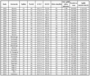 Valmierieši šosezon ieguva 85 punktus 36 spēlēs jeb 78.7% no maksimāli iespējamā punktu daudzuma – ne “Skonto” dominances laikā (1992–2004) tas ir 6. labākais rādītājs čempioniem, kopš 2014. gada 2. labākais (“Riga” 2020. gada rādītājā jāņem vērā, ka priekšpēdējo spēli pret RFS aizvadīja Covid-19 saslimušo prombūtnē, bet pēdējo spēli pret ventspilniekiem nemaz neaizvadīja). Toties “Valmiera” ir vienīgie čempioni, kas spējuši iesit 100+ vārtus (te gan jāatzīmē, ka 2003. gada 2. vietas ieguvēji “Metalurgs” iesita 100 vārtus, turklāt tas iespēts 28 spēlēs, kas jāņem vērā). Vidēji spēlē vārtu pārsvars, kas valmieriešiem ir 2.11 vārti, ir labākais kopš 2011. gada (2017. gada sezona, kurā “Spartaks” vidēji spēlē bija ar 0.42 vārtu pārsvaru, izceļas, tā arī bijusi vienlīdzīgākā sezona līdz šim).