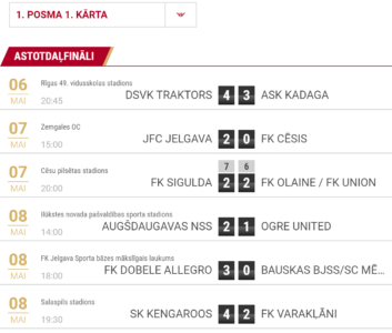 No sestdienas spēlēm jāizceļ JFC “Jelgava” un “Babītes” SK mačs (3. līgas rietumu zona pret 2. līgas rietumu zonu). Spēles laikā jelgavnieki, esot iedzinējos 0:3 vēl 70. minūtē, atspēlējās, to izdarot 71., 74. un 90.+4. minūtē, kā arī, esot vairākumā, papildlaikā iesita ceturtos un uzvarēja.