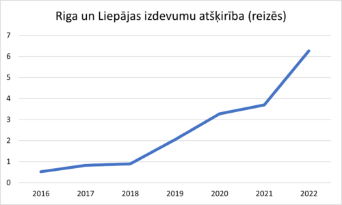 Vairākas komandas (jeb to biedrības) ir jau iesniegušas savus 2022. gada finanšu pārskatus. Tiklīdz būs pieejami visi pārskati, mūsu portālā par šo būs vairāk informācijas. Taču viens grafiks, kas parāda, cik ļoti atšķiras komandu izdevumi (“Riga” un “Liepājas” izdevumu dalījums):