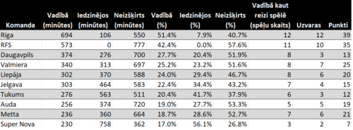 Virslīgas kārtas viena pēc otras skrien ļoti ātri, un visam izsekot ir sarežģīti. Drīz noslēgsies lielie čempionāti, tādējādi varēs ar lielāku uzmanību mūsu čempionātam pievērsties. Bet šajā rakstā par vienu statistikas rādītāju – vadībā un iedzinējos pavadīto minūšu skaitu.