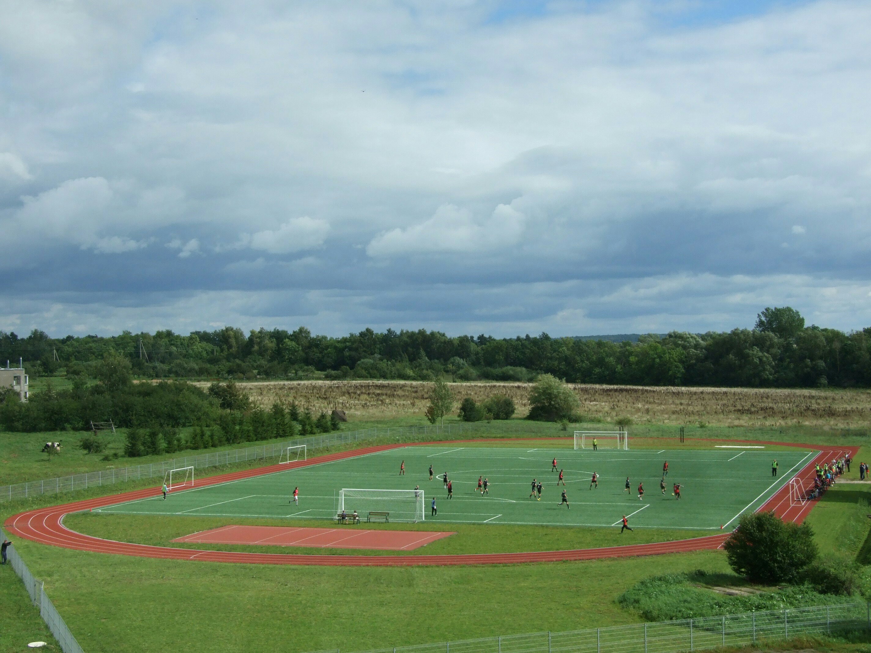 Swoim obiektem dysponuje także miejscowe gimnazjum. Znajdziemy tam sztuczną murawę oraz bieżnię. To z kolei stadion, który bardziej wpisuje się w łotewskie trendy małych miejscowości. Klub FK Simnas gra na naturalnej trawie.