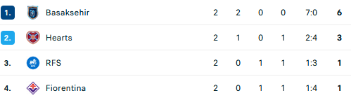 W innym spotkaniu grupy A Fiorentina niespodziewanie uległa na wyjeździe Basaksehirowi Stambuł i tabela przedstawia się póki co dość zaskakująco.