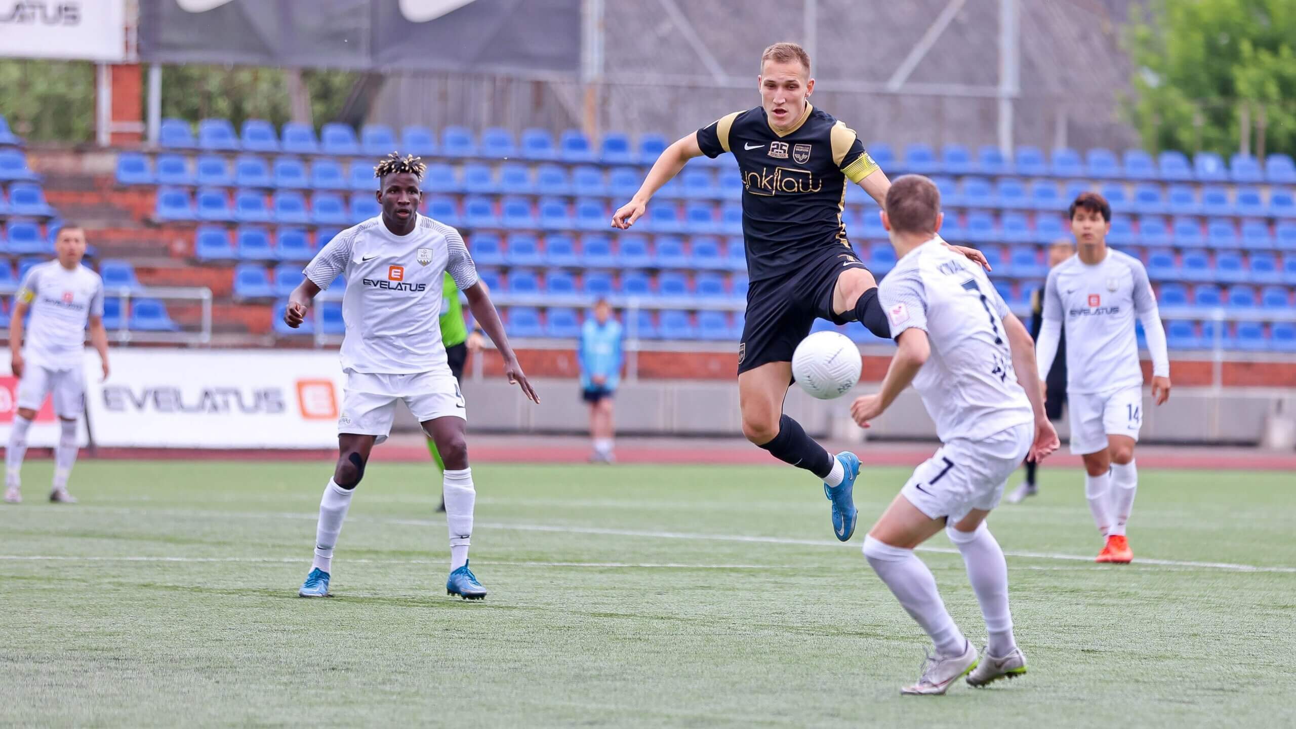 Raimonds Krollis w czarnej koszulce. Fot. Valmiera FC