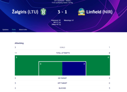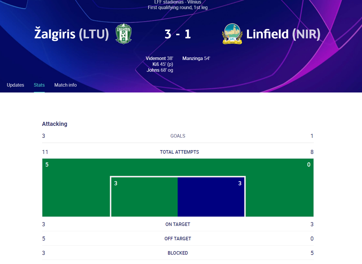 Swoje pierwsze zadanie na arenie międzynarodowej wykonał mistrz Litwy. Żalgiris Wilno w I rundzie el. do Ligi Mistrzów pokonał północnoirlandzki Linfield i jest na dobrej drodze do awansu do kolejnej fazy.